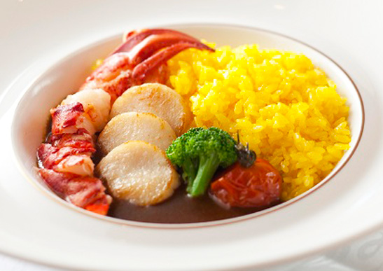 「オマール海老と帆立貝のカリー サフランライスを添えて」