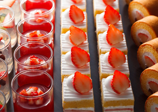 スーパーメロンショートケーキ/スーパーあまおうショートケーキ/あまおうタルト/ガトーショコラ/カップケーキ(チョコレート/レモン)/パンナコッタ~あまおうソース~/あまおうゼリー/あまおう豆カン/アーモンドクレームブリュレ/ピュアコーヒーゼリー/アイスクリーム/フレンチトースト2種