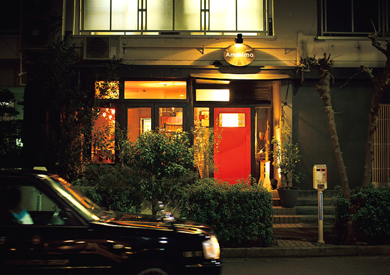 外苑西通りと並行した首都高速の高架下。古い民家や商店が並ぶ細い道沿いにあり、この店から漏れる温かみある灯りが目印だ。店の前に立てば、大きな窓から劇場のよう......