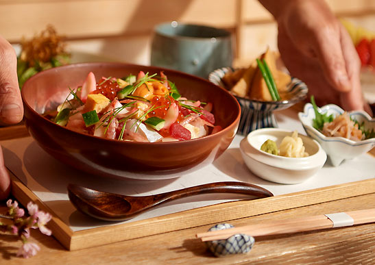 うららかな昼のひとときに楽しめるのは、旬の食材たっぷりで春をまとった「サクラちらし寿司 ランチ」。