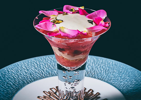 日本で唯一の100%化学農薬不使用のエディブルフラワー専門店「EDIBLE GARDEN」とコラボし、上質なバラを目と舌で楽しめる貴重な一品。