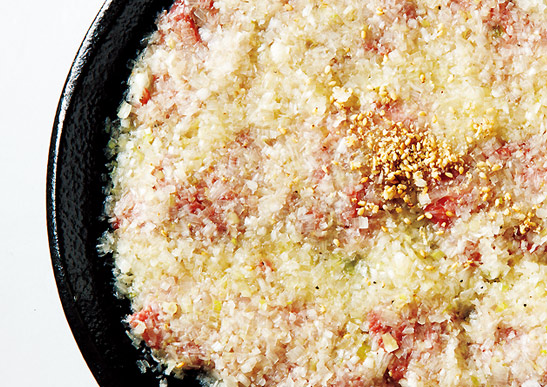 「ネギがのっていない面をこんがりと焼き上げてから、ネギの面は7〜8割ぐらいの焼き加減で」