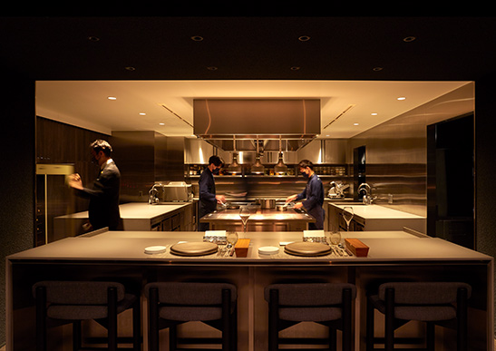 最大4席の劇場型カウンターは、1日1組限定でプライベート感たっぷり。