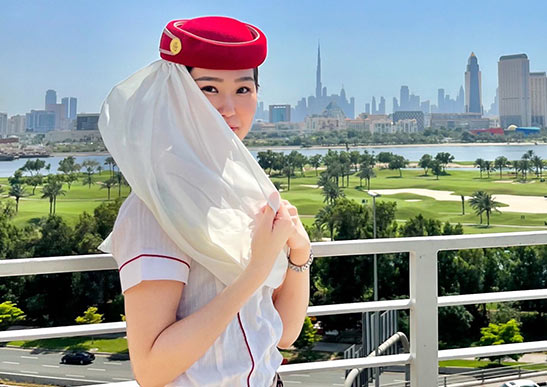 仕事:ドバイの航空会社で、客室乗務員として勤務。CA歴は5年目。