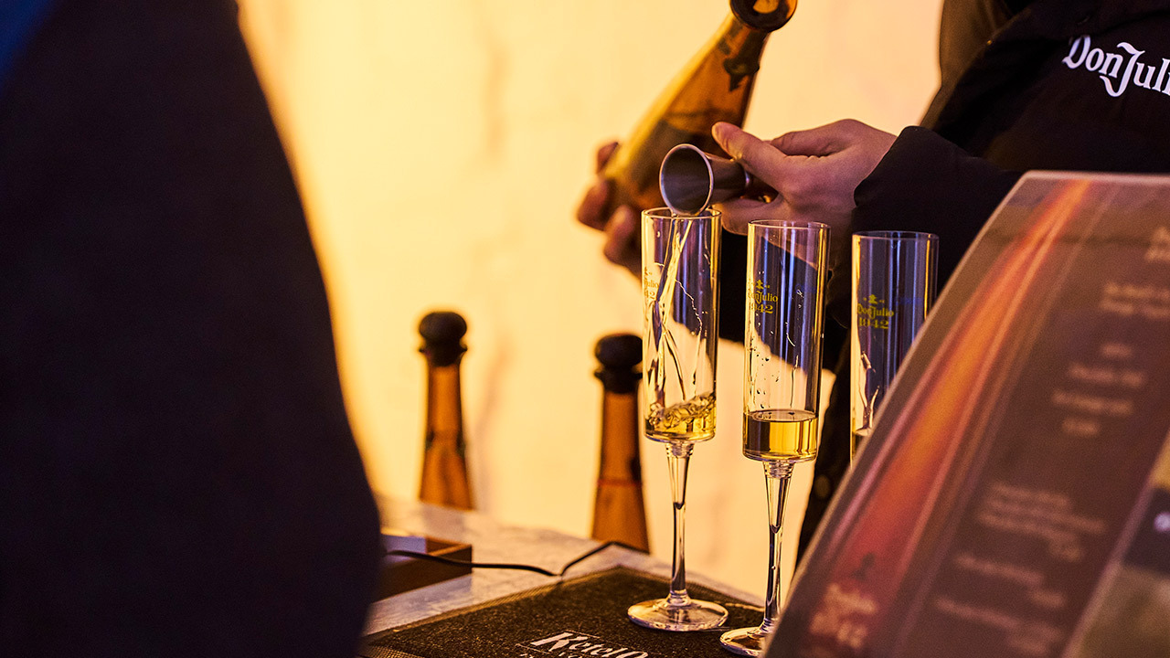 『Niseko Confidential』では、スキー板を模したボードに並んだお猪口で、4人同時に「ドン・フリオ 1942」を楽しむユニークなアトラクションも用意されている。
