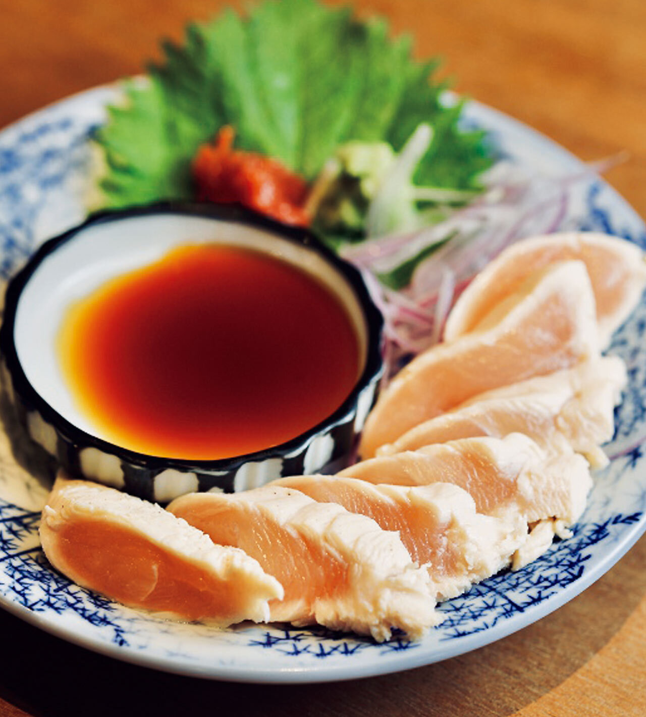 鳥取の大山鶏を使った「ササミたたき」¥495。
