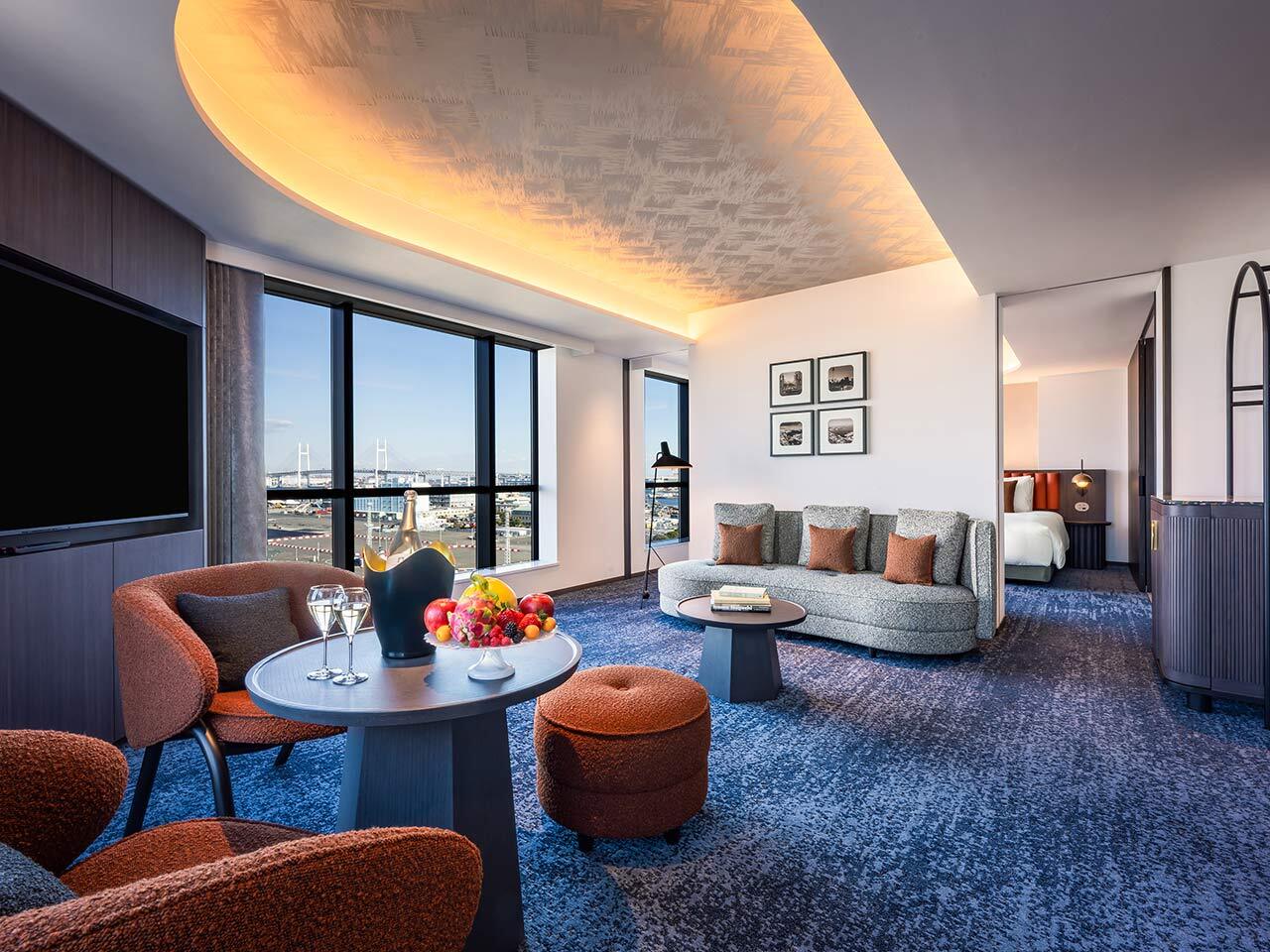 横浜港を臨む絶好のロケーションと洗練された空間は、昼は穏やかな光が差し込む中で、夜は横浜港の夜景を眺めながら、ゆったりとしたステイを楽しむことができる。