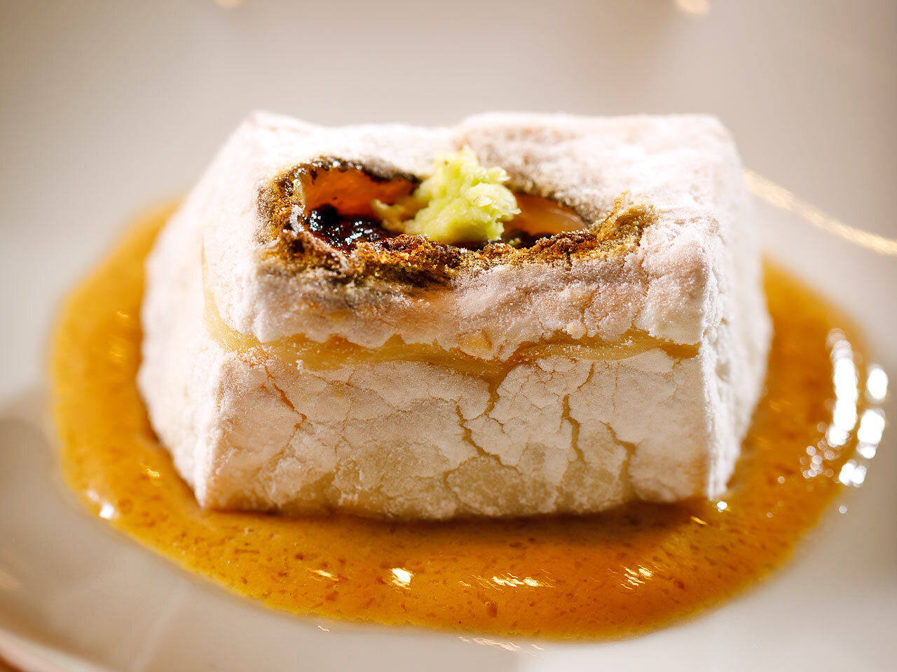 フルムダンベールチーズと蕗の薹を合わせた中に、白味噌や酒粕といった和の要素を隠し味に加え、春の苦味を演出。