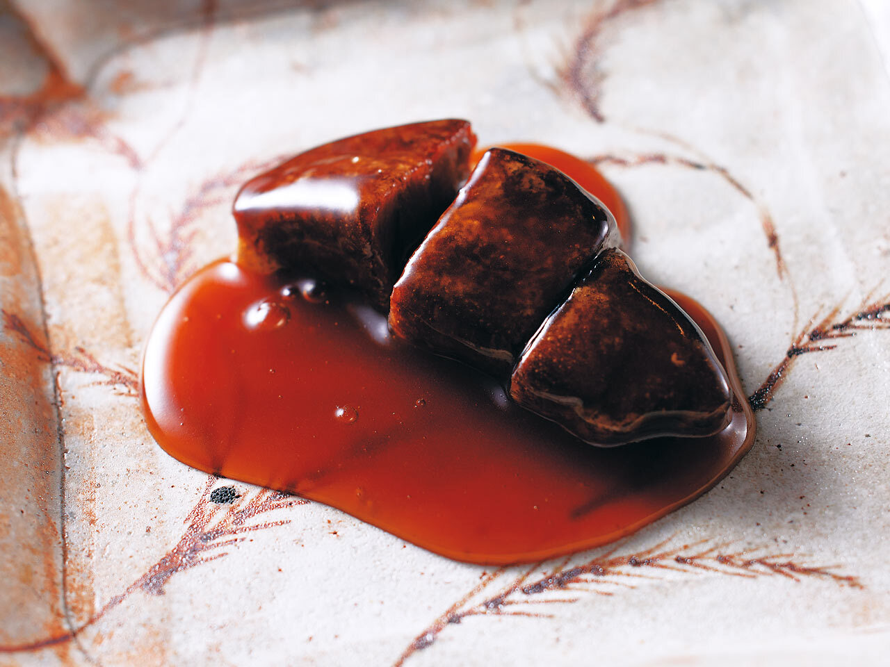 お酢を効かせた地で豚頬肉を柔らかく煮込んでから揚げて、黒酢風味のソースと和えたオリジナル。ほろりと口中で解ける食感が独特。