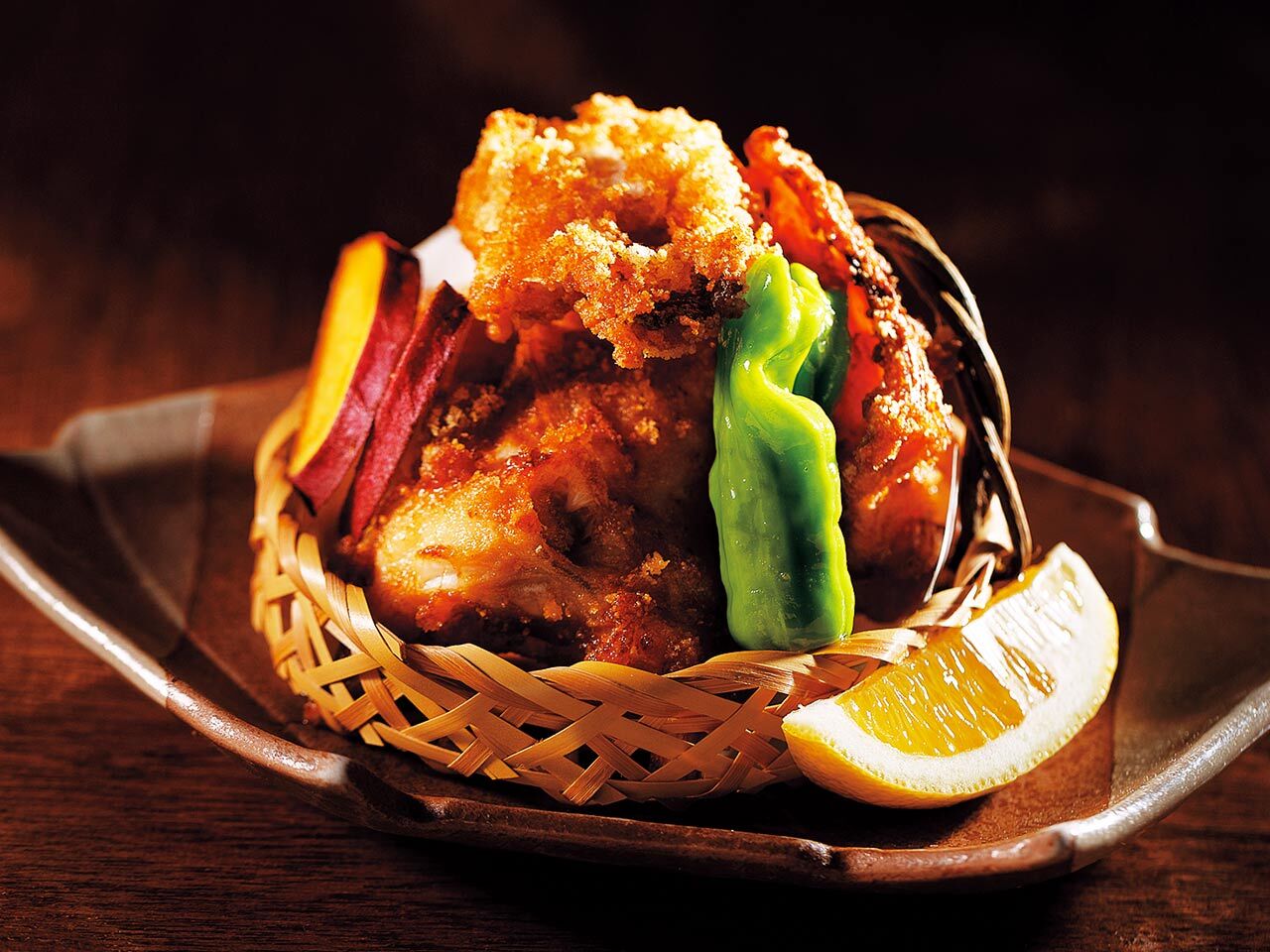 あとを引く味わいと食感が秀逸な「唐揚げ」は、肉厚な「あら身」と“とおとうみ”と呼ばれる「皮」の盛り合わせ。