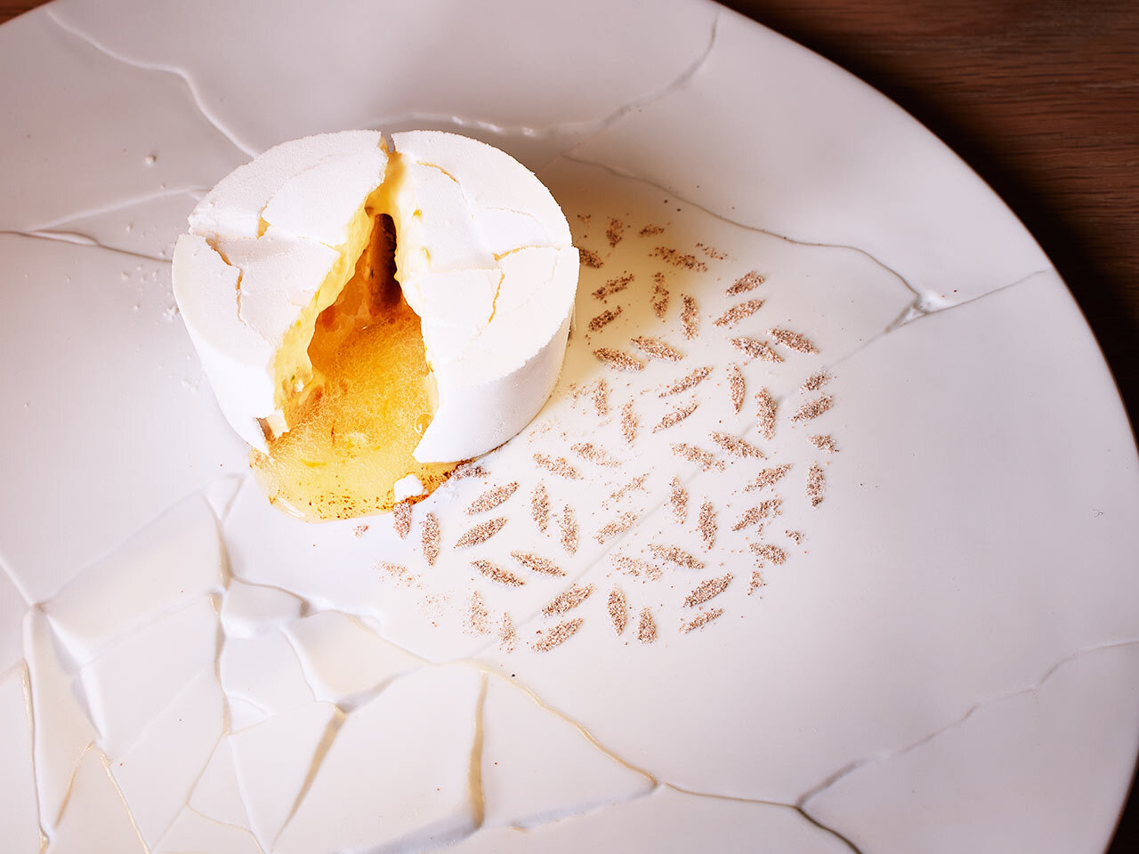 独自の手法で編み出したメレンゲは宮崎シェフのスペシャリテのひとつ。中にはコーヒーのムースやライムのソースを忍ばせている。