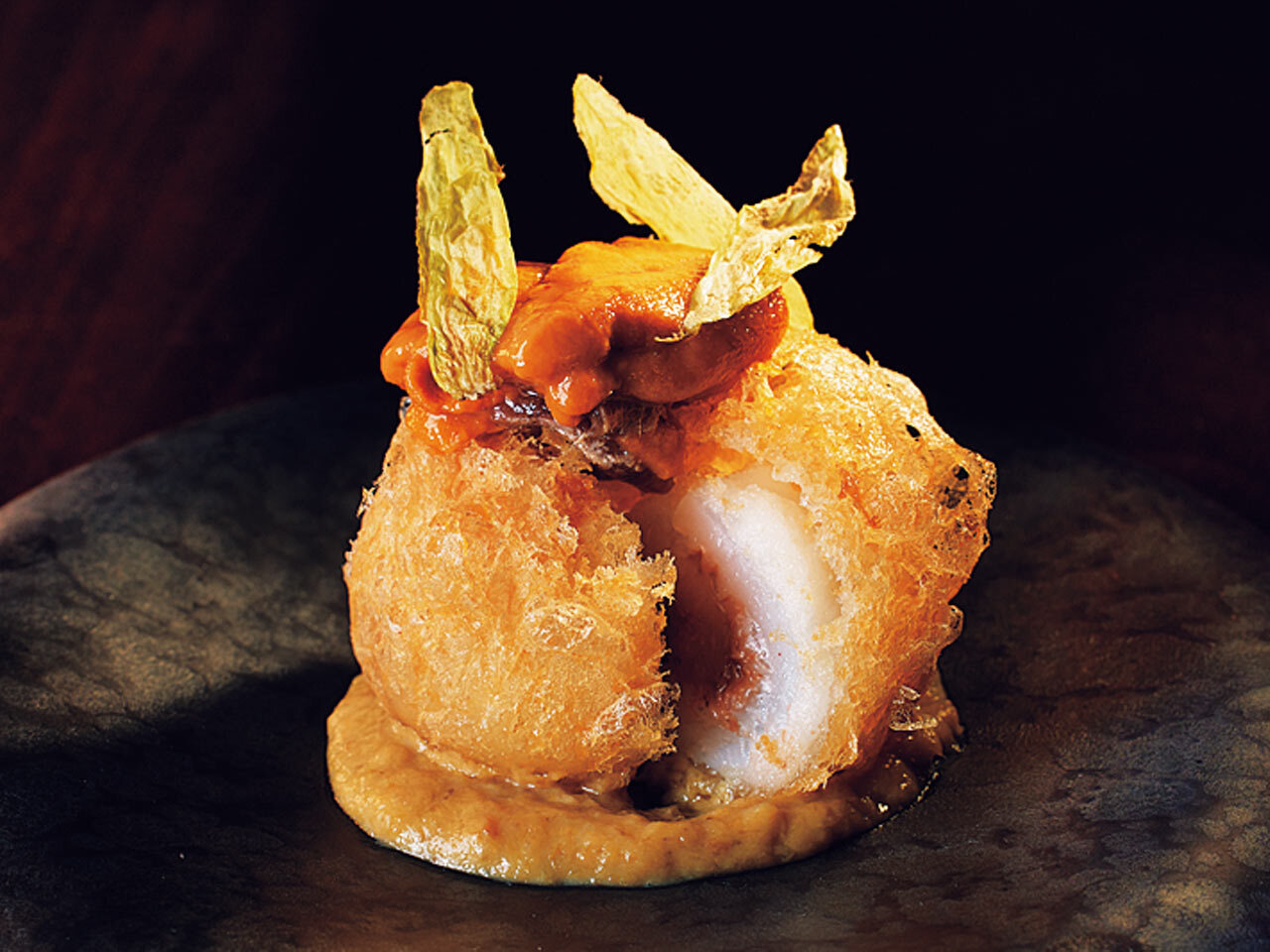 また「大隅産炙り烏賊のフリット」は、香港の人気店『The Chairman』の名物「タロイモの蜂の巣揚げ」をアイデアソースに、衣に大和芋を使用。