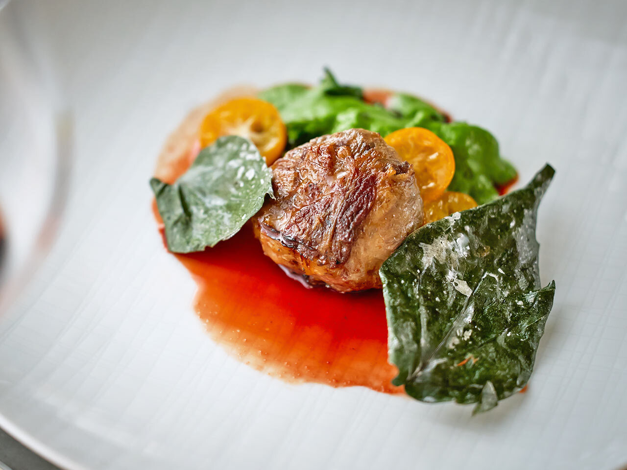 「食べた瞬間にわかりやすく美味しい料理」をモットーに、クラシカルな手法を用いた料理は手間暇かけた実直な味わい。盛り付けも奇をてらうことなく親しみやすい。