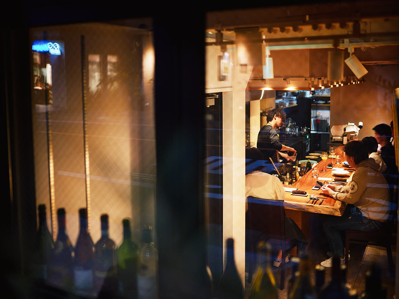 当日予約でふらりと訪れ、2皿とワインを楽しんでいくご近所さんが多く、時に仕切りの向こうが“常連専用カウンター”になることも。