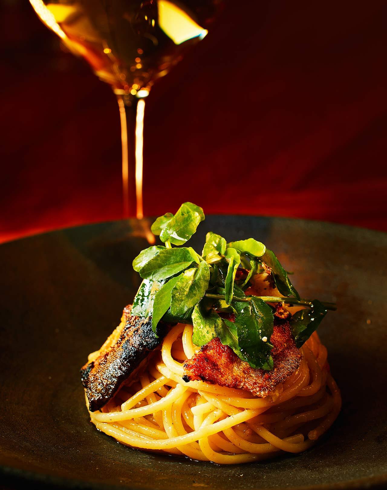 パスタは秦野産とイタリア産の小麦、全卵で作る生地に空気を含ませ2時間かけて伸ばす。透けるほど薄く軽やかな口当たりは感動もの。