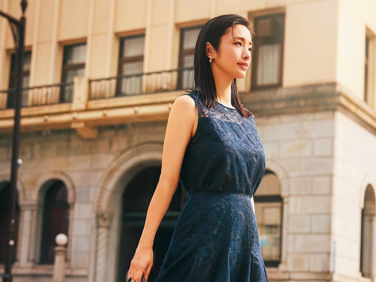 「銀座ディナーで胸を張れる服」は上戸彩がお手本!夏の白肌が引き立つネイビーとレースが大人の最適解