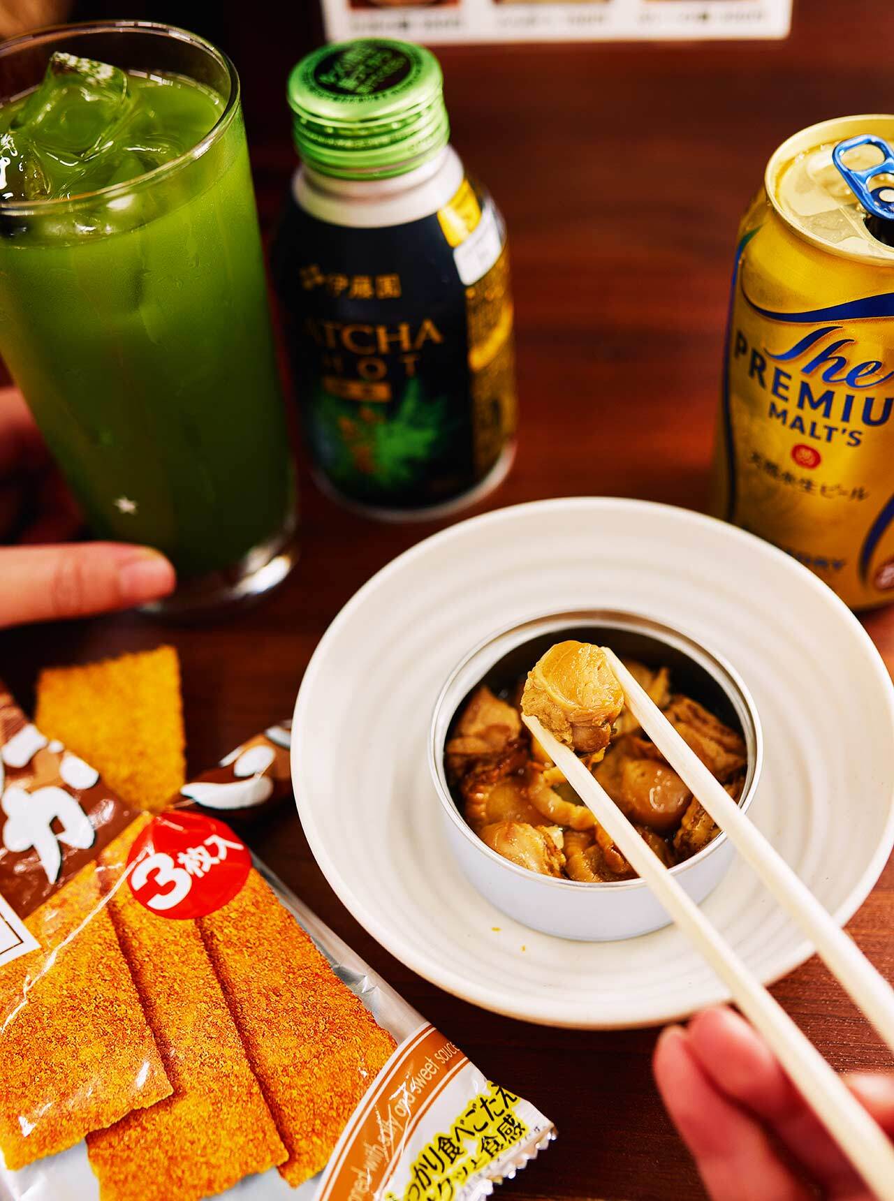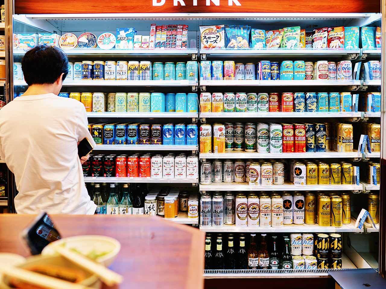 コンビニの形態も残し、店内には缶詰や乾き物、チーズに菓子、各種酒、ソフトドリンクなどが並ぶ。