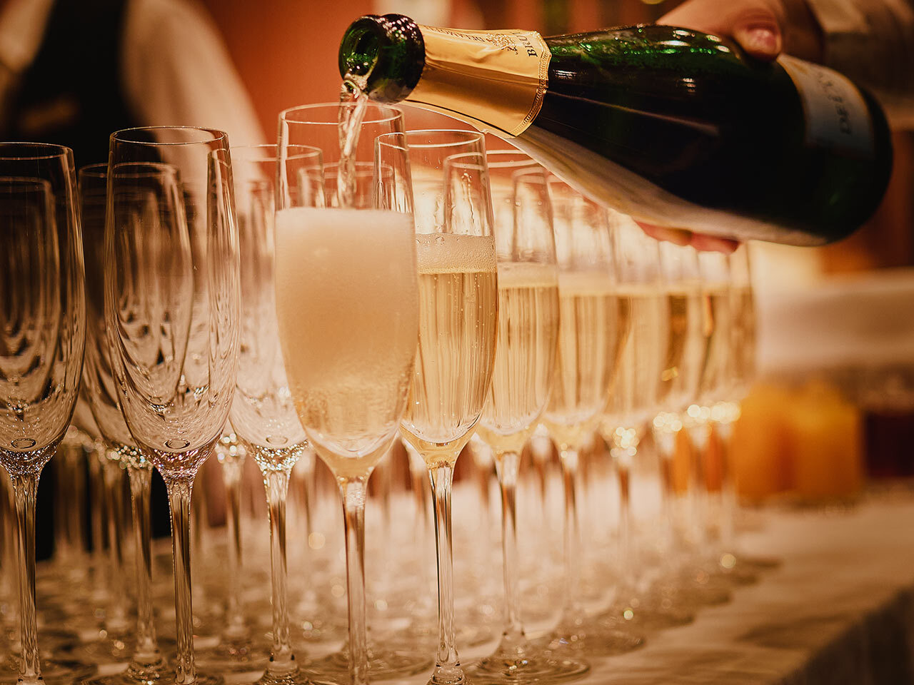 そしてパーティー会場に足を踏み入れたゲストには、まずはウェルカムシャンパーニュをサーブ。