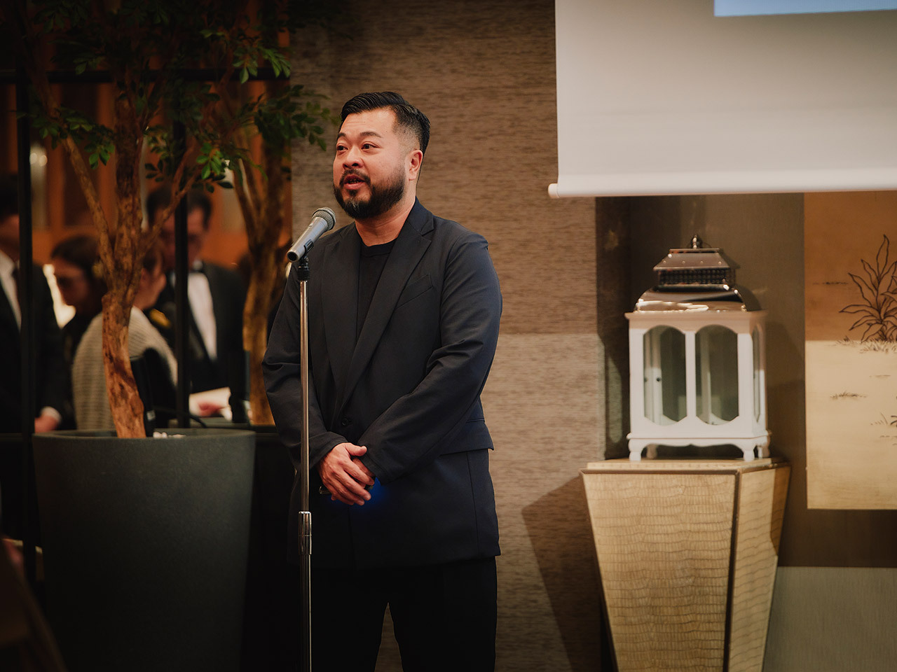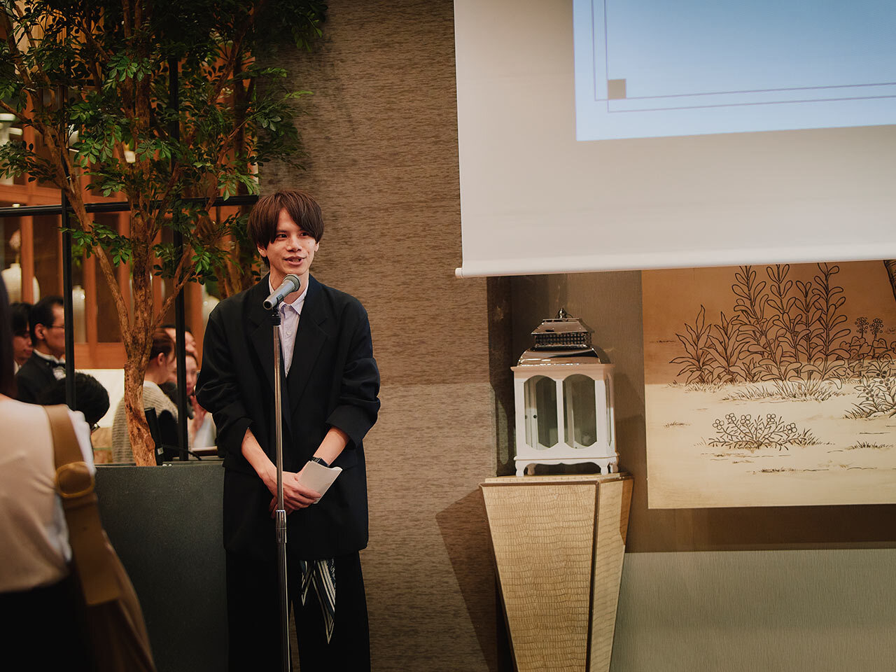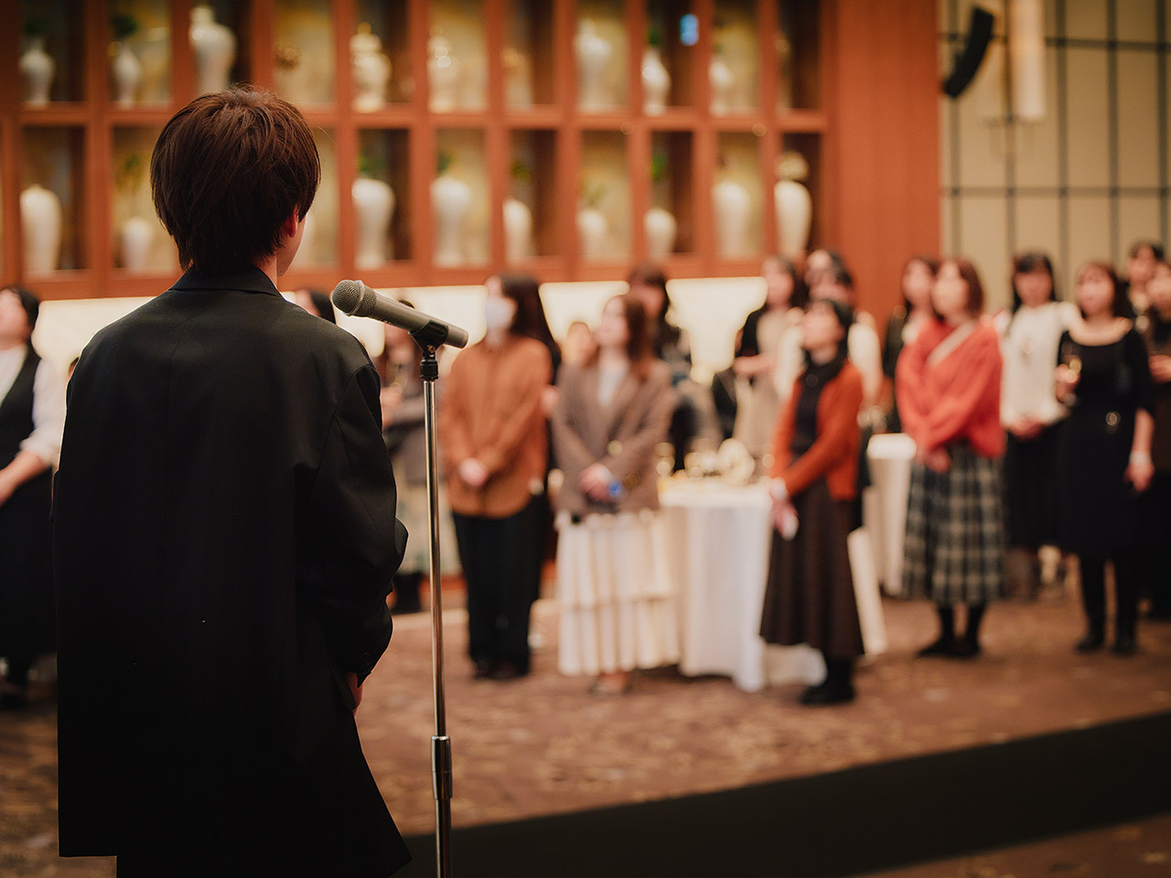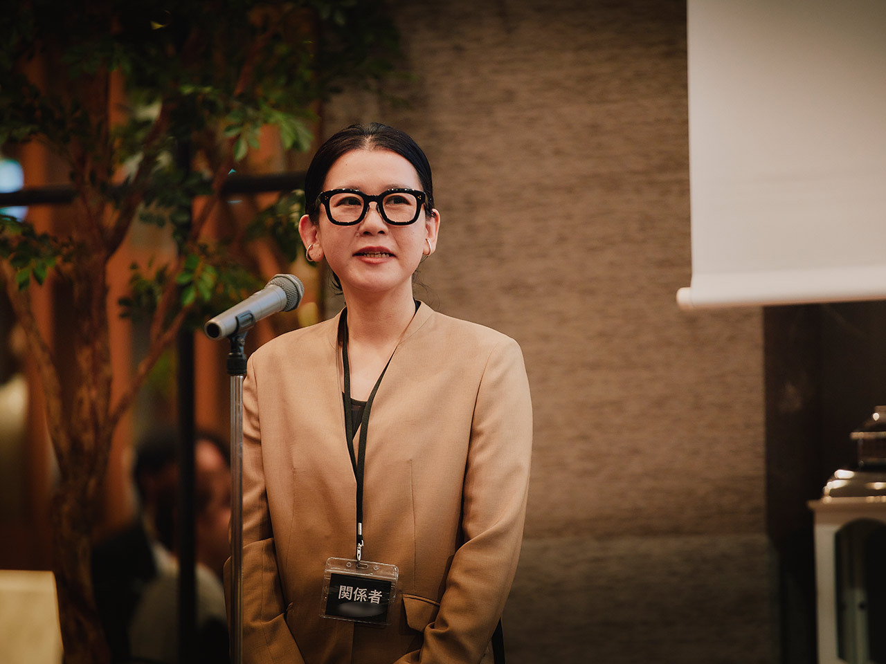 ICB(オンワード樫山)の蟹江皓子氏が登壇し、乾杯のご発声へ。