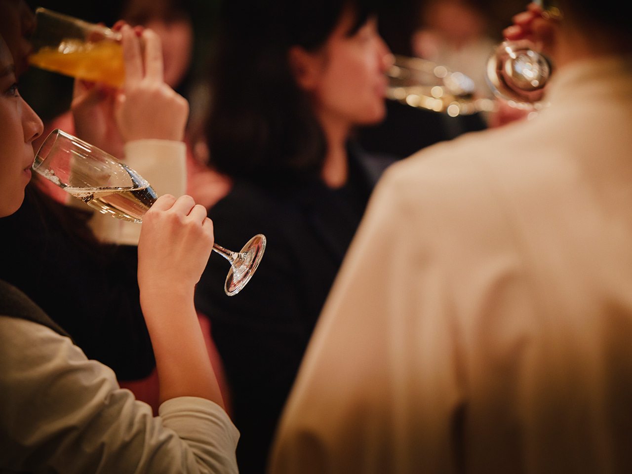 ゲスト全員でシャンパングラスを掲げて、乾杯……!こうして、華やかな夜が本格的にスタートした。
