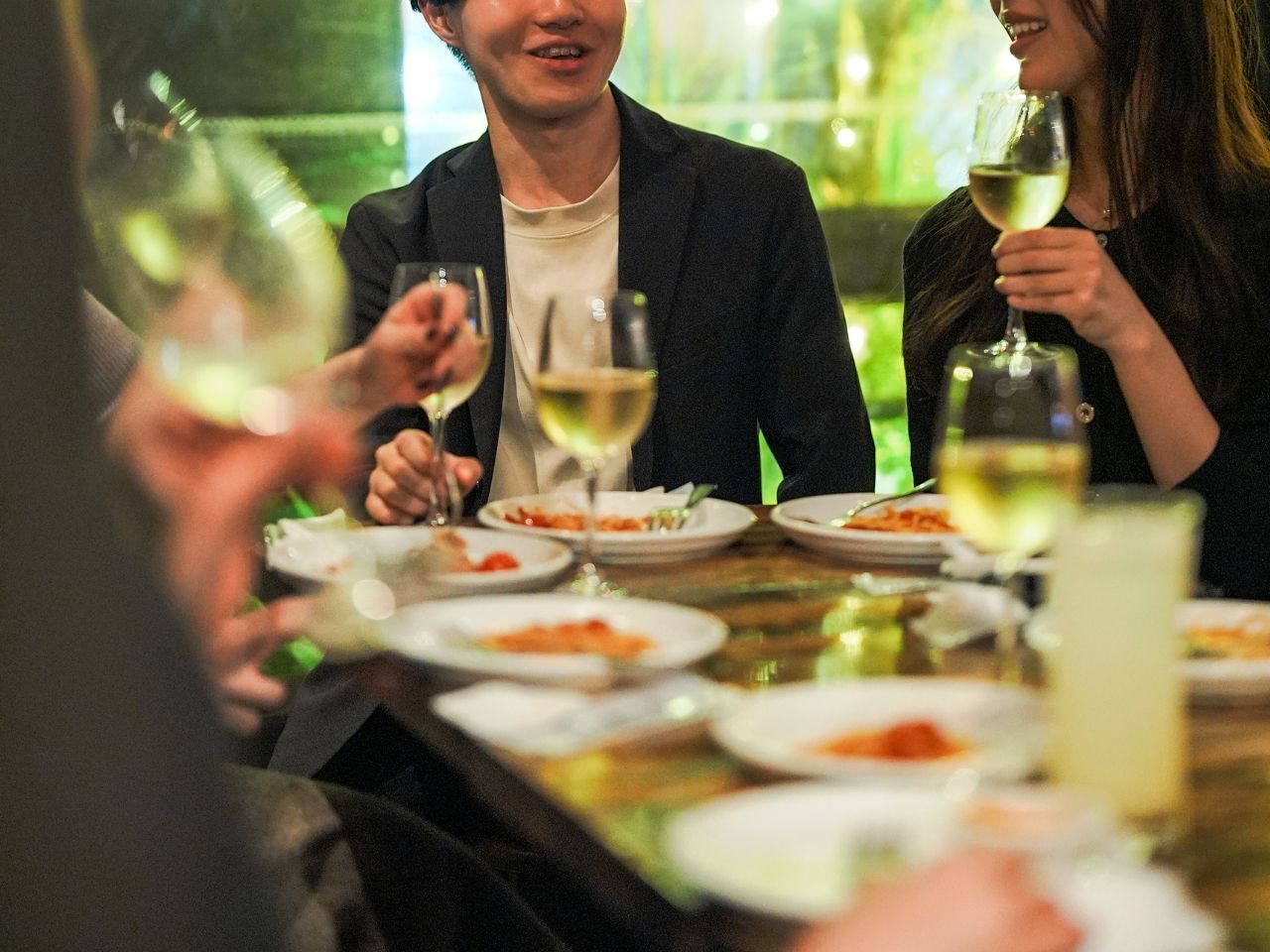 ここでも料理やワインをきっかけに会話が次々と広がり、グルメや趣味の話から、気づけば「好きなお笑い芸人」トークで盛り上がるひと幕も。