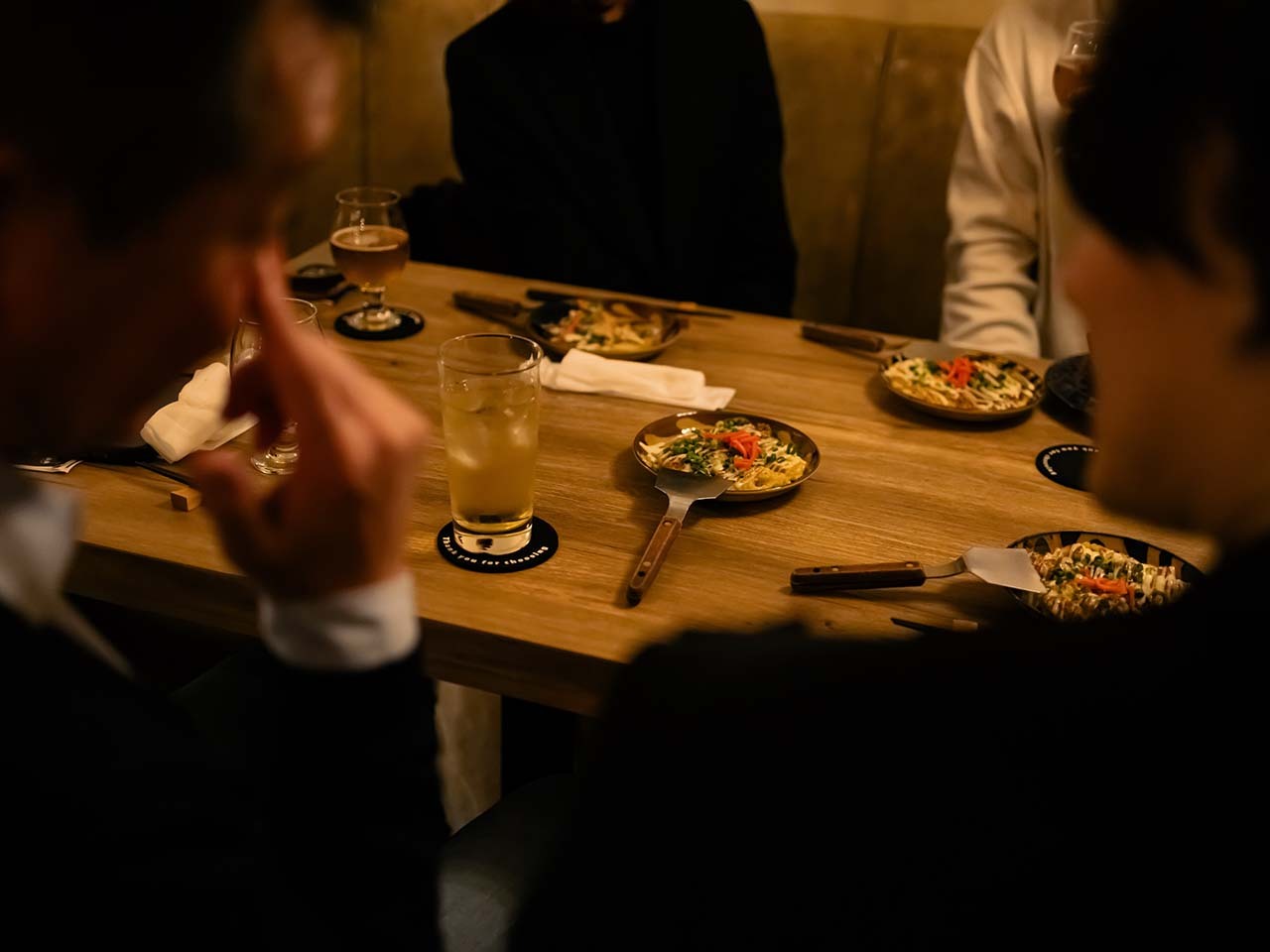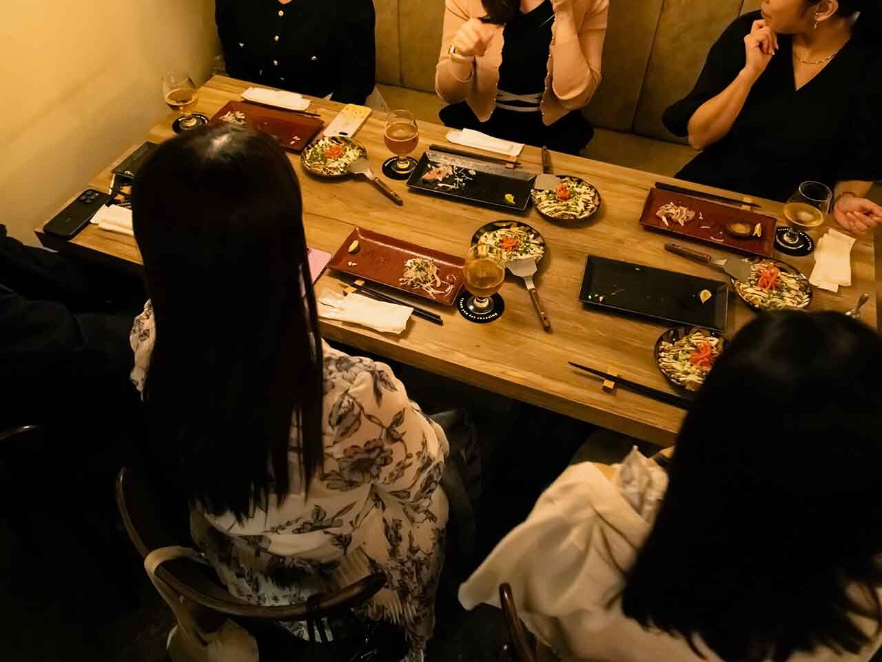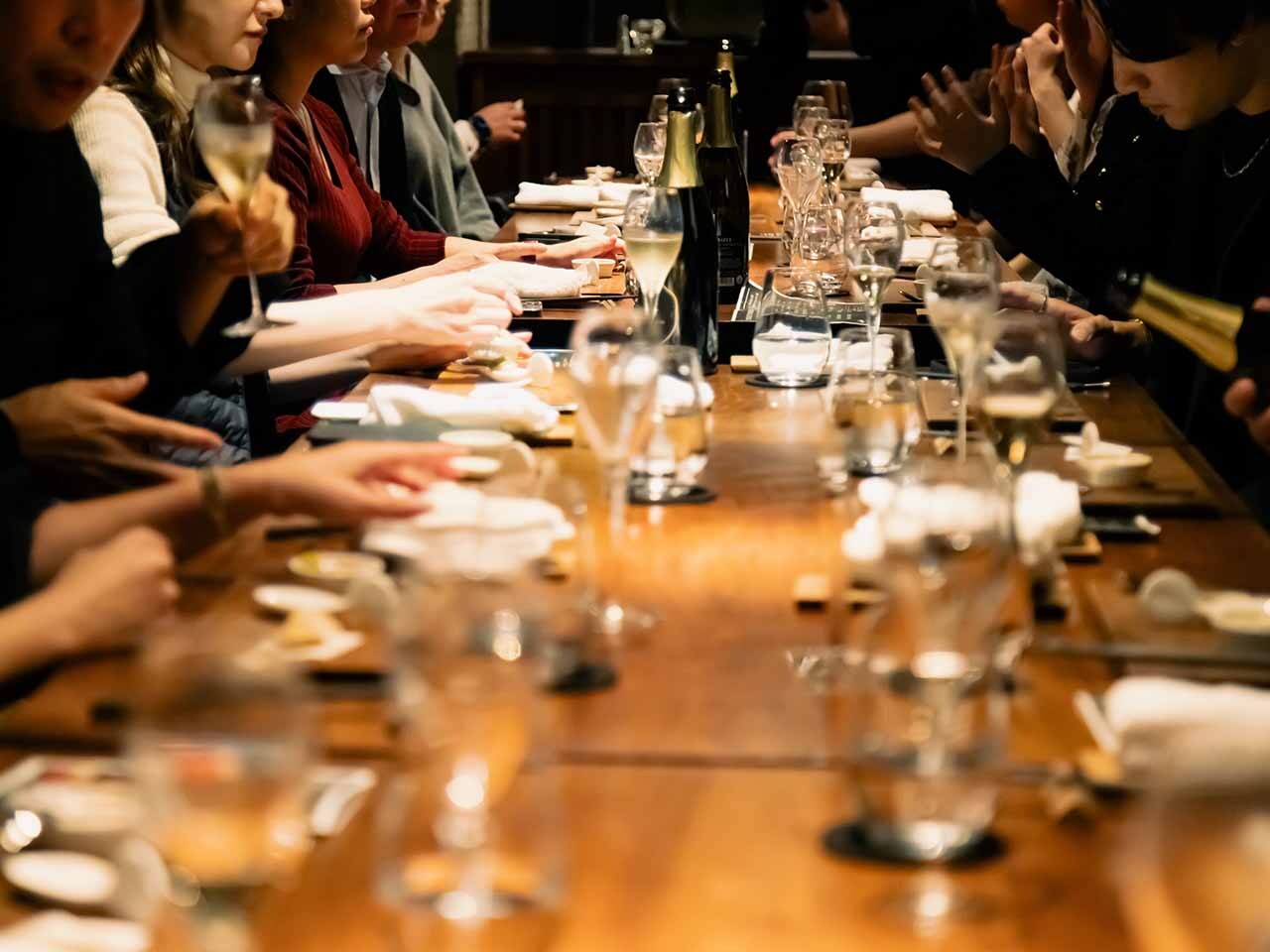 料理が運ばれるたびに会話が広がり、初対面でも自然と距離が近づいていきます。