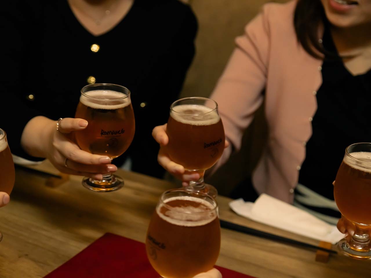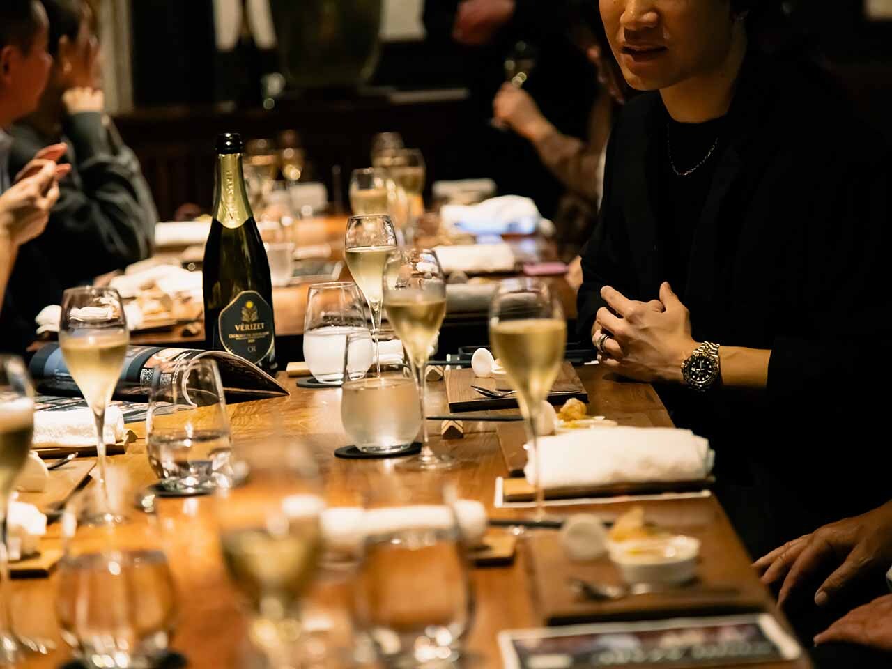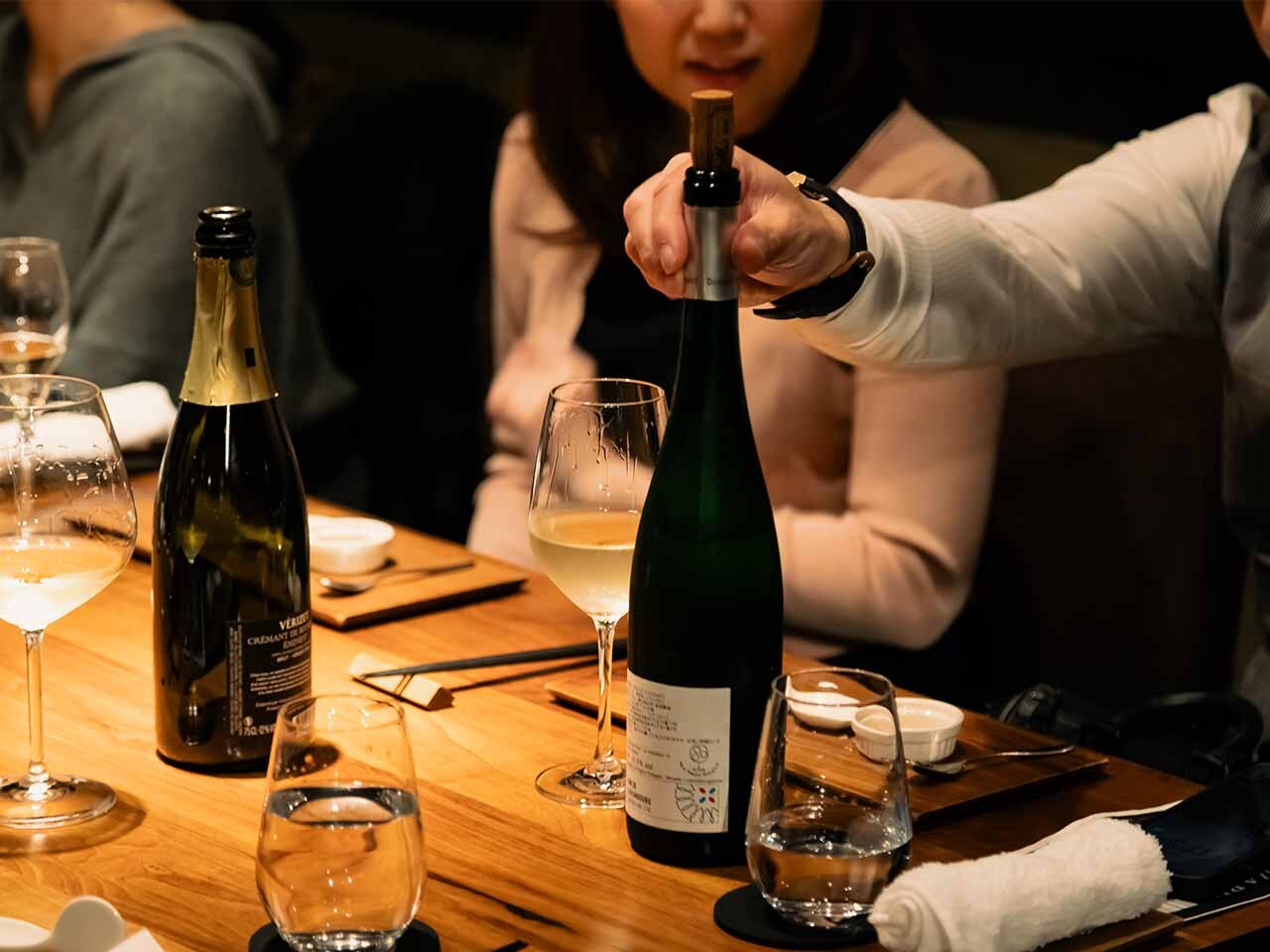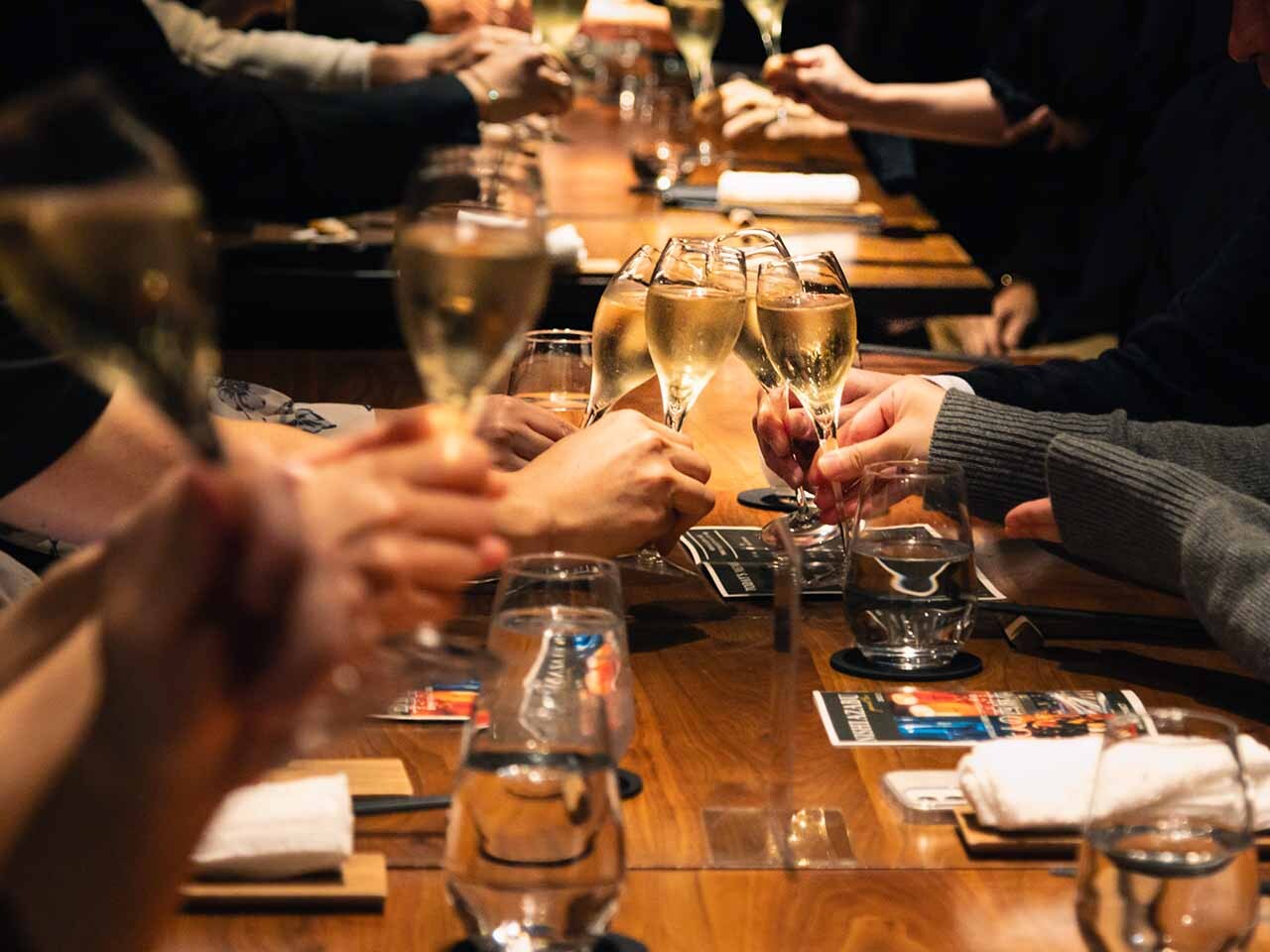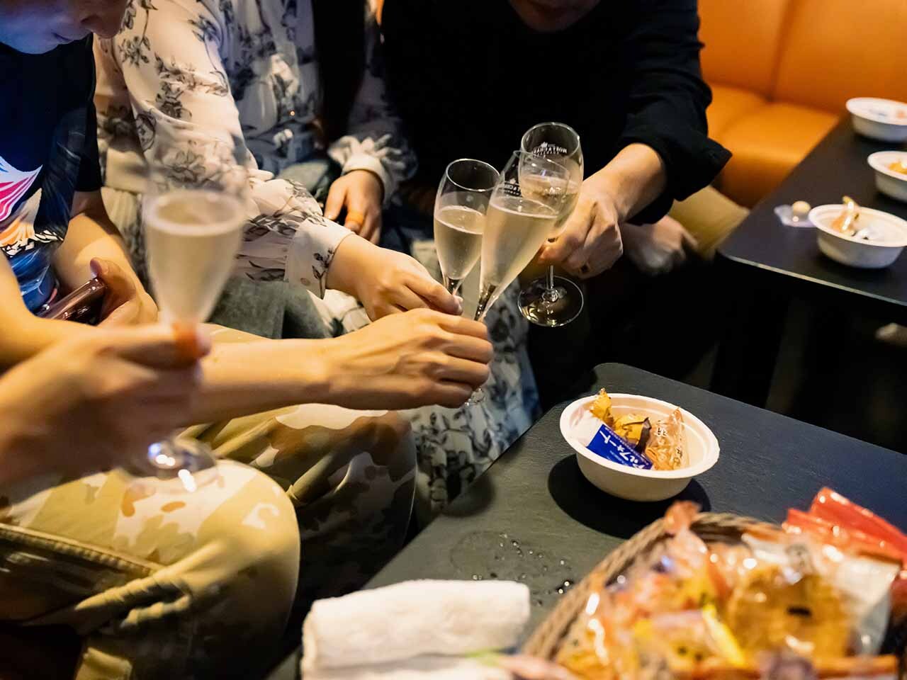グラスが軽やかに触れ合い、場の空気が一気に華やぎます。