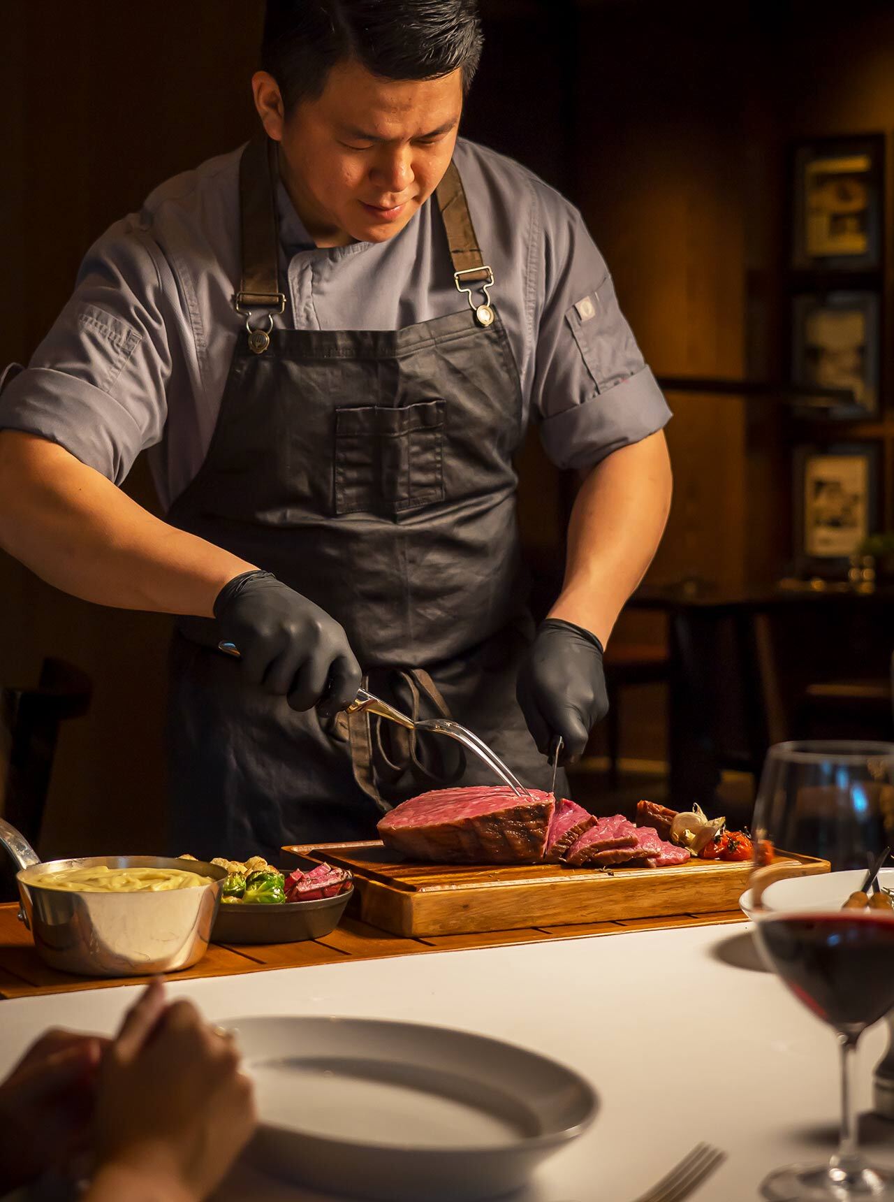 シェフ自ら肉を切り分け、ゲストをもてなす高揚感!