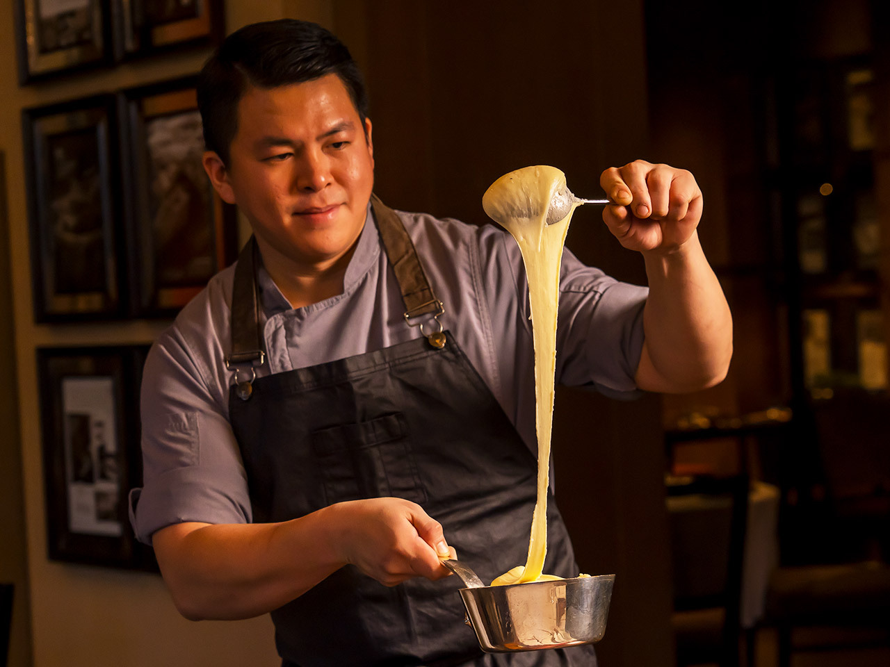 さらに、ストラッチャテッラとゴーダの2種類のチーズに生クリームを加えた『オーク ドア』名物のマッシュポテトも楽しみのひとつ。伸びる瞬間をレンズに収めたい!