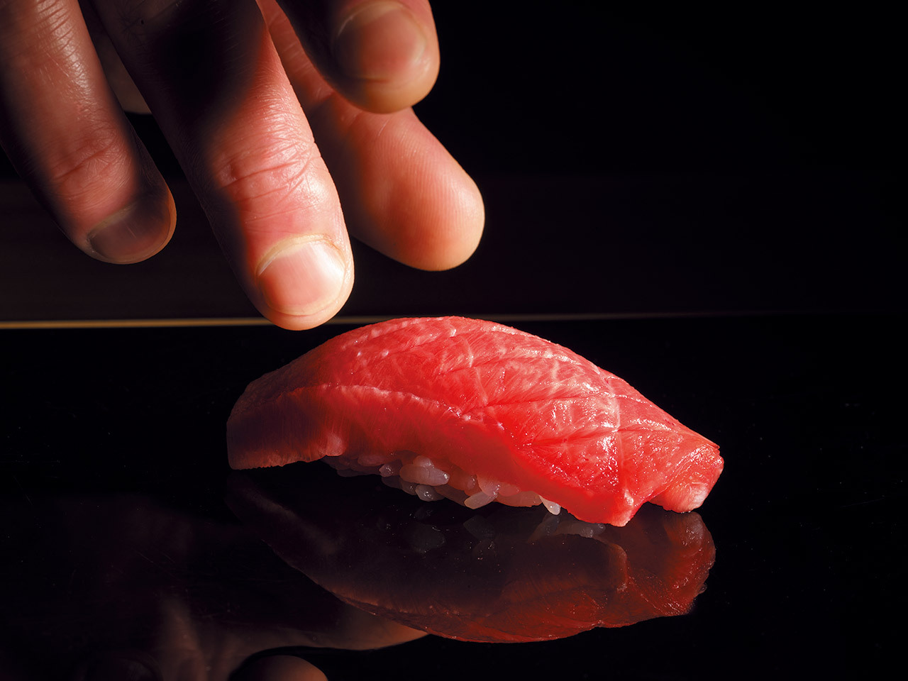 淡麗な赤身の握りは日本人の心を癒す。