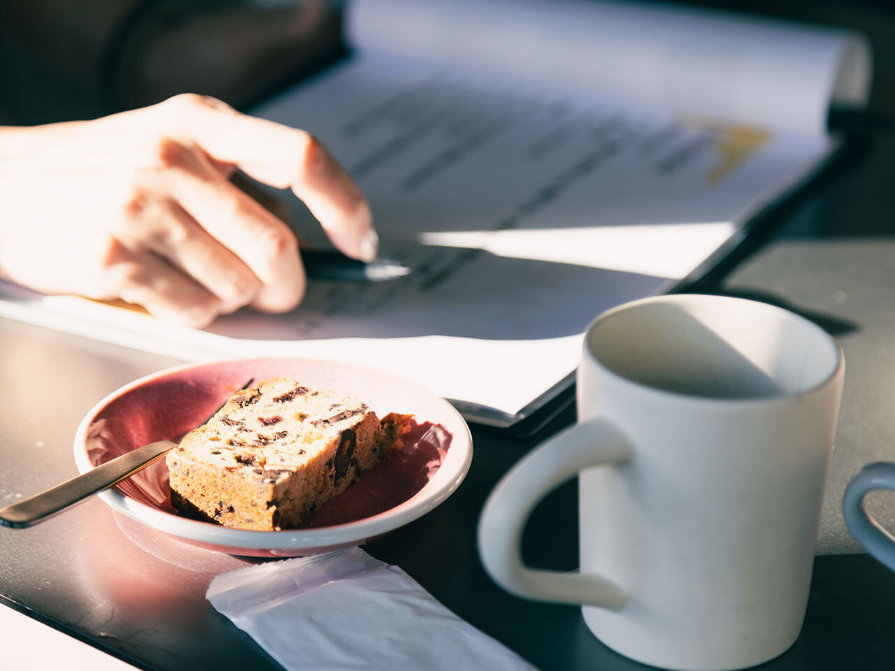 まずは季節限定の「クリスマスブレンド」とパウンドケーキで、和やかにスタート!