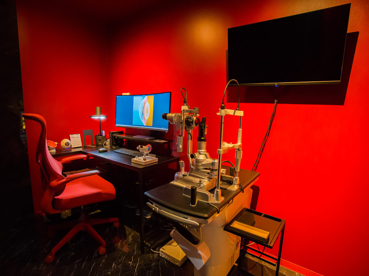 ICL治療が可能かどうかを調べる最初のステップ。近視・乱視の度数に加え、角膜や目の奥の健康状態、レンズを入れるためのスペースが十分にあるかまで、細かく検査していく。