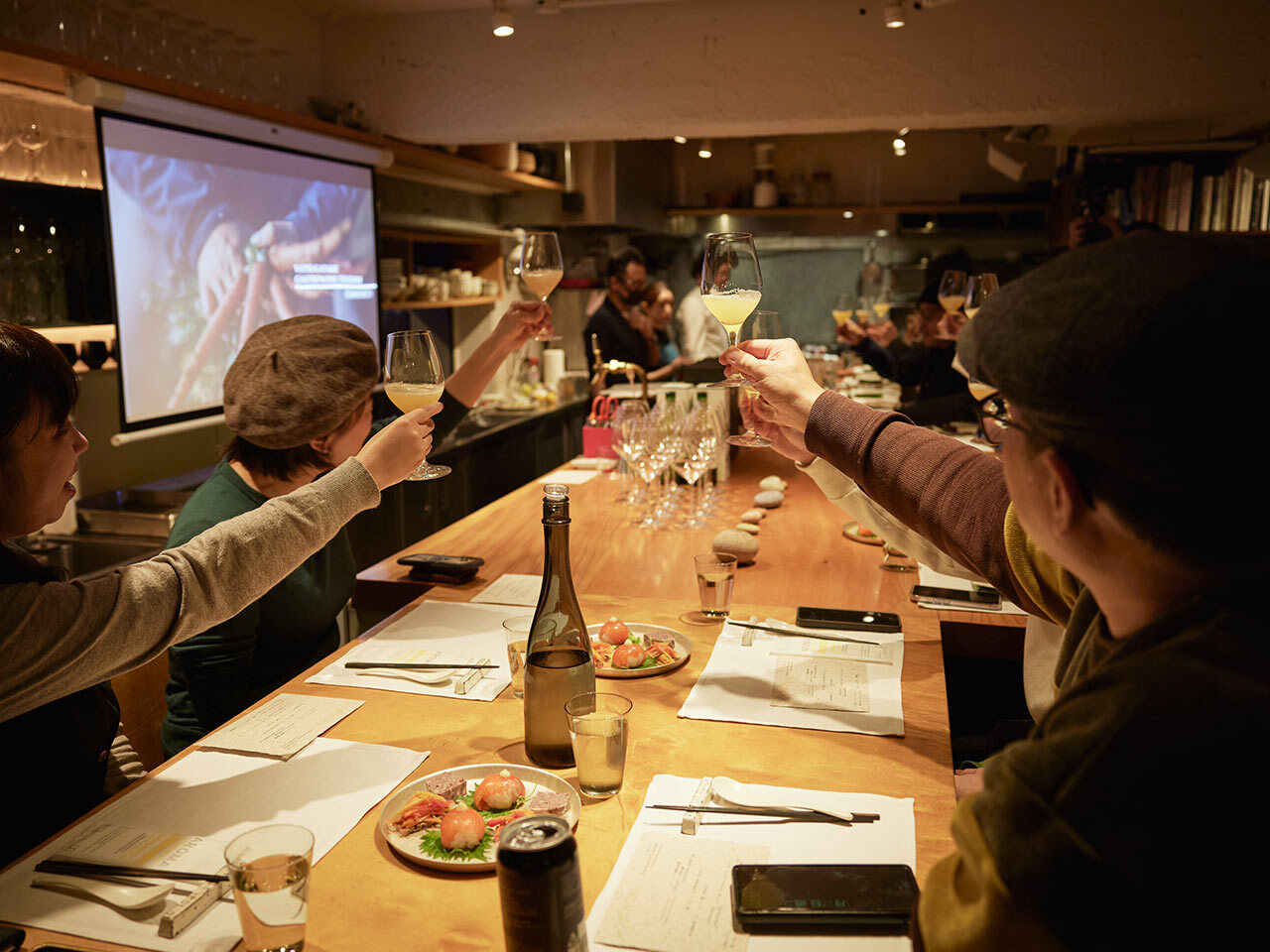 会場として選ばれたのは、山梨県出身のオーナーシェフが腕を振るう麻布十番の名店、『可不可』。お酒を軸にしたペアリングツーリズムというテーマを共有したうえで一堂に会した彼ら彼女らは、それぞれの経験と感覚をもとに、この構想と真摯に向き合った。