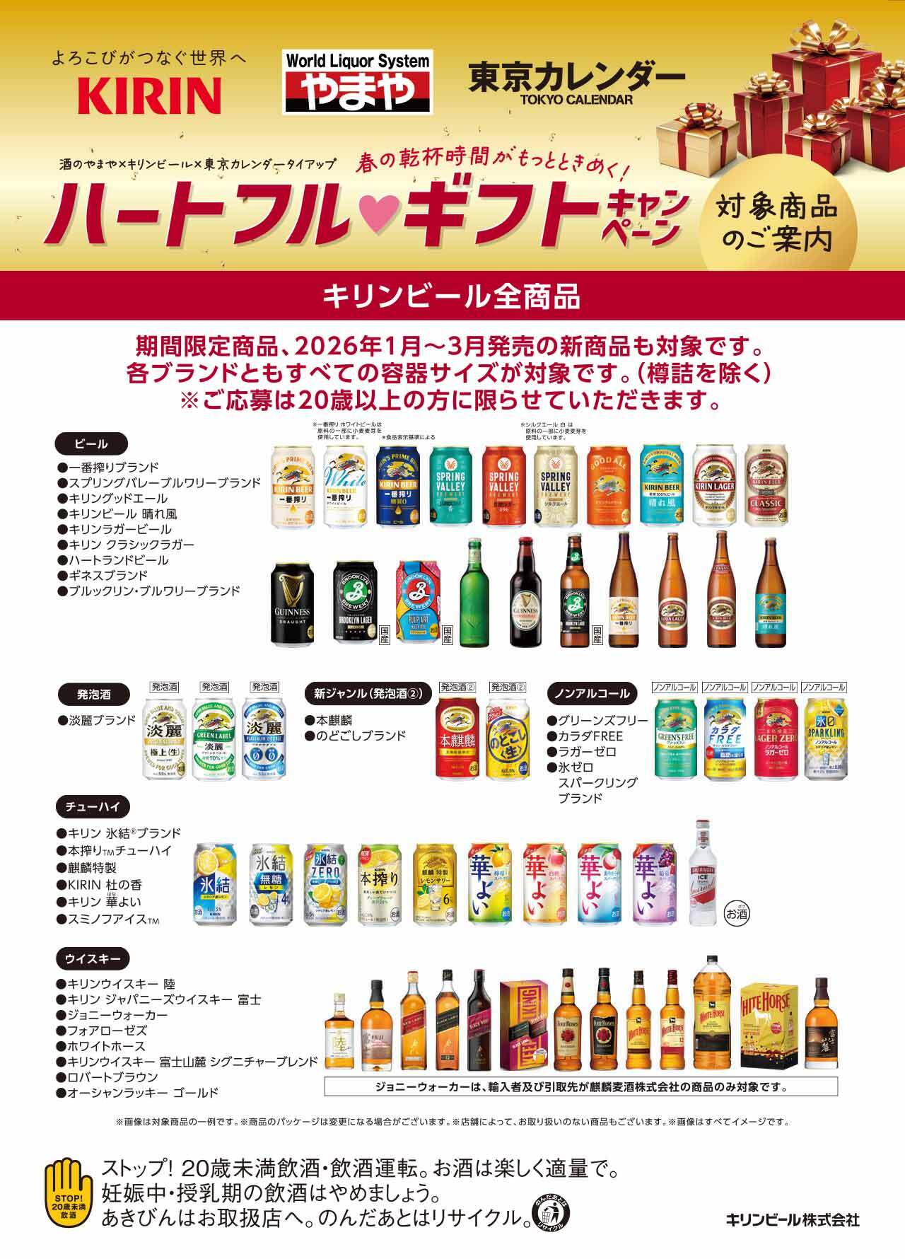 現在、酒類を中心とした専門店『やまや』とキリンビール、そして東京カレンダーでは3社で連携し、春の乾杯時間がもっとときめく!ハートフル♡ギフトキャンペーンを実施中。
