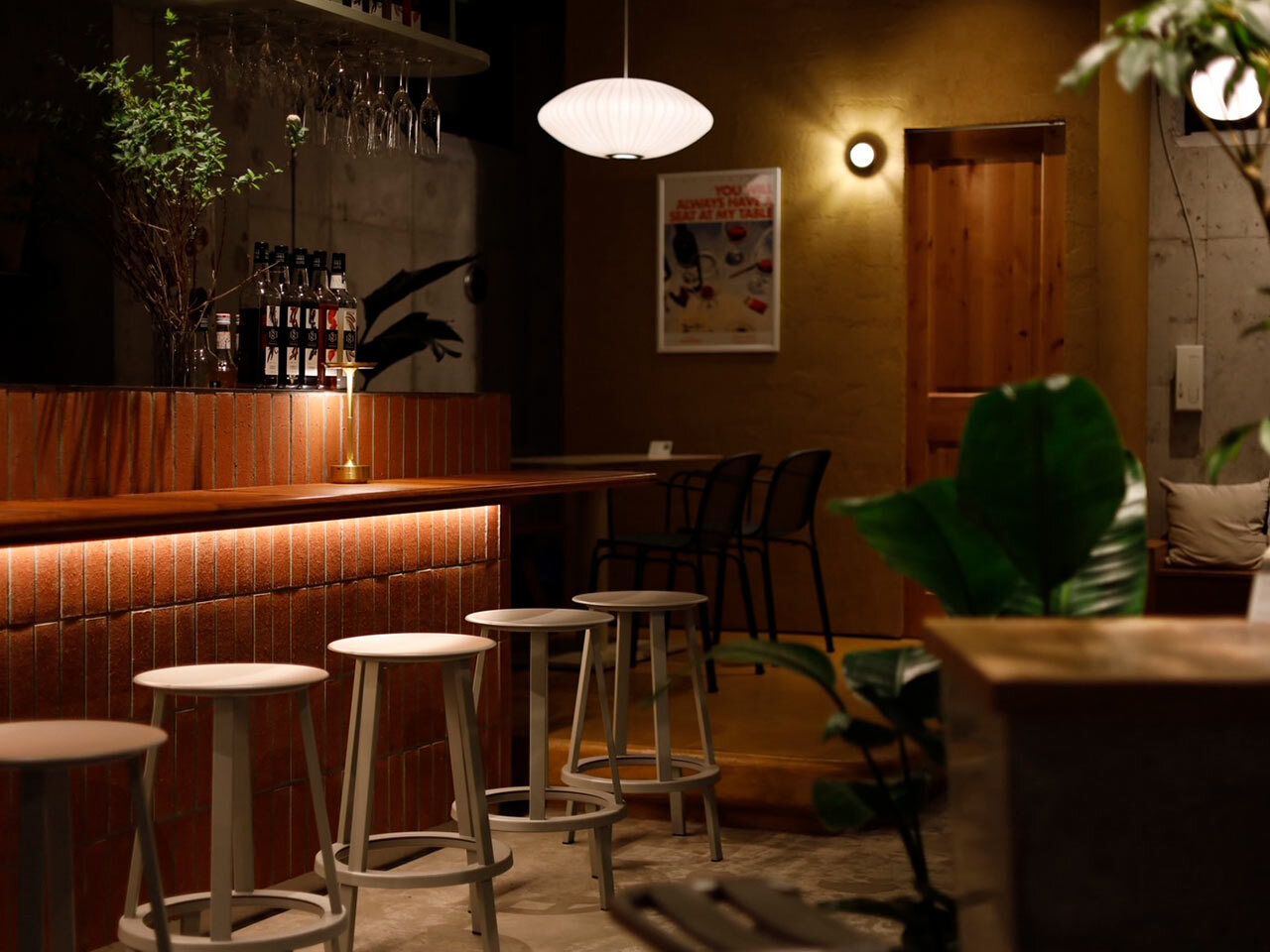 柔らかな灯りに包まれた店内は、洗練されたインテリアが静かに存在感を放つ上質な空間。