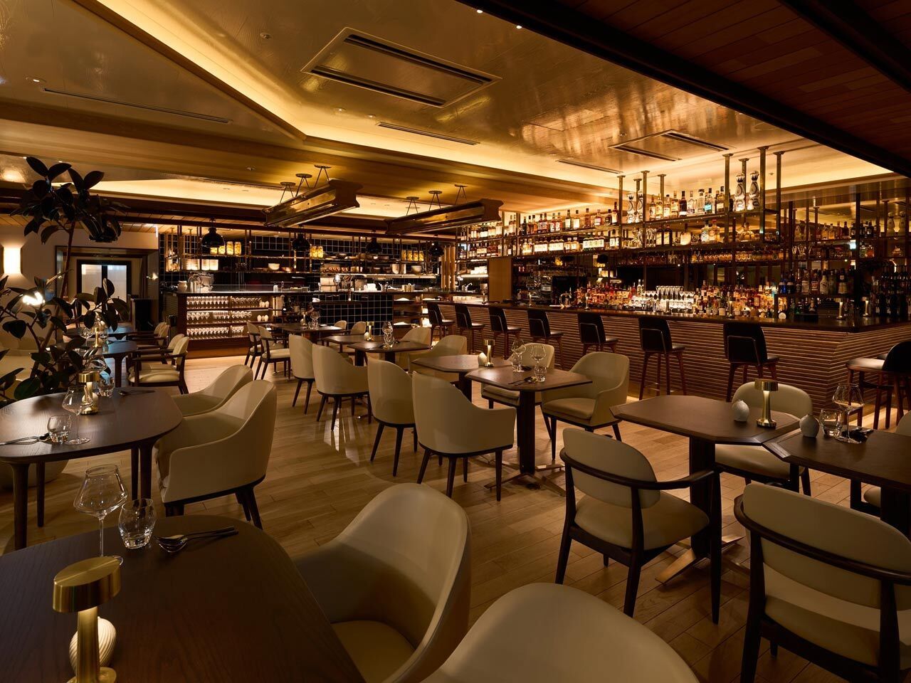 世界的デザインユニット「Roman & Williams」による空間設計と、STELLAR WORKSのタイムレスな家具が調和した店内は、都会の喧騒を忘れさせる落ち着いた雰囲気。