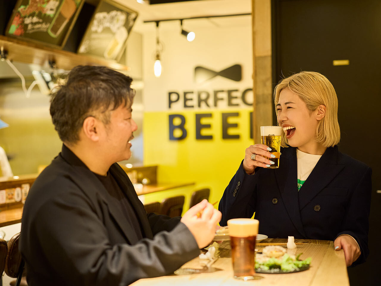 品質管理が徹底された樽から高い技術で注がれる極上の生に、普段からビールを愛飲している船山と照沼も太鼓判。