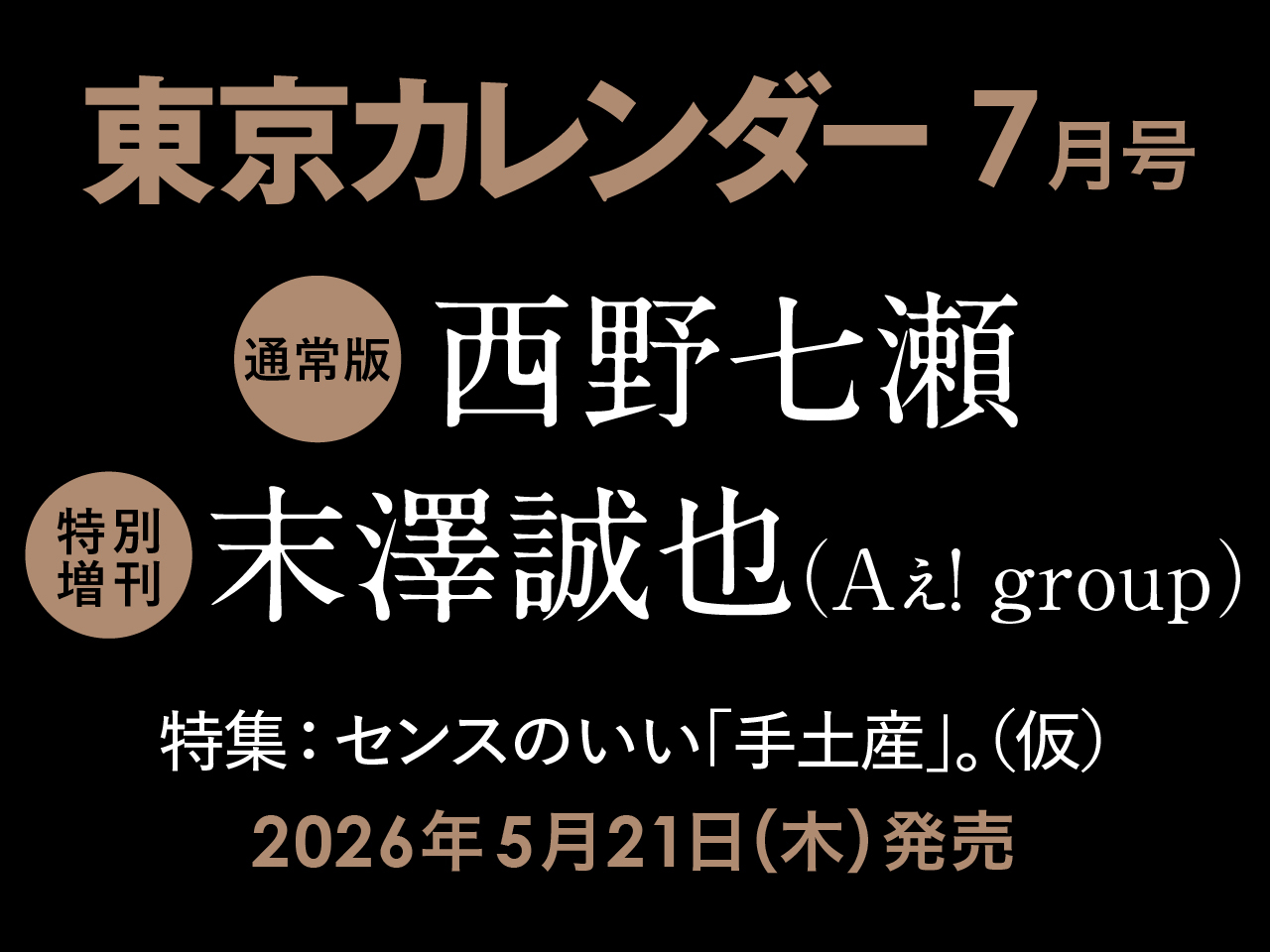 【5/21(木)発売】東カレ7月号の特集は『センスのいい「手土産」』!通常版は西野七瀬さん、特別増刊は末澤誠也さん(Aぇ! group)が表紙を飾る