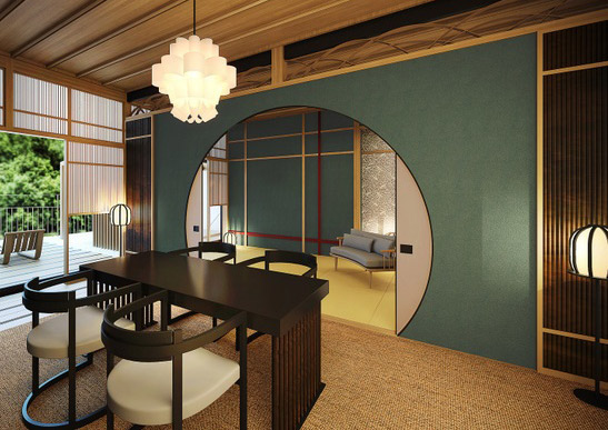 また「湯」は、檜天井が美しい内風呂や竹林風呂が備えられた「片岡温泉」にて。オーガニックをコンセプトとし、こだわりをもって造られた宿泊施設の「オーガニック離れ宿」は、日常を忘れさせてくれるラグジュアリーな空間となっている。