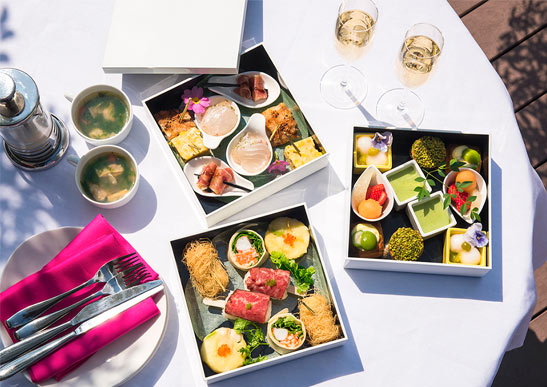 ホテルに隣接の御殿山庭園のテラスで味わうランチボックス、夕暮れ時から、広大なアトリウムで楽しむシャンパンフリーフロー付きイブニングハイティーなど、女子会の贅沢ランチや春のロマンチックデートにぴったりのメニュー&シチュエーションとなっている。